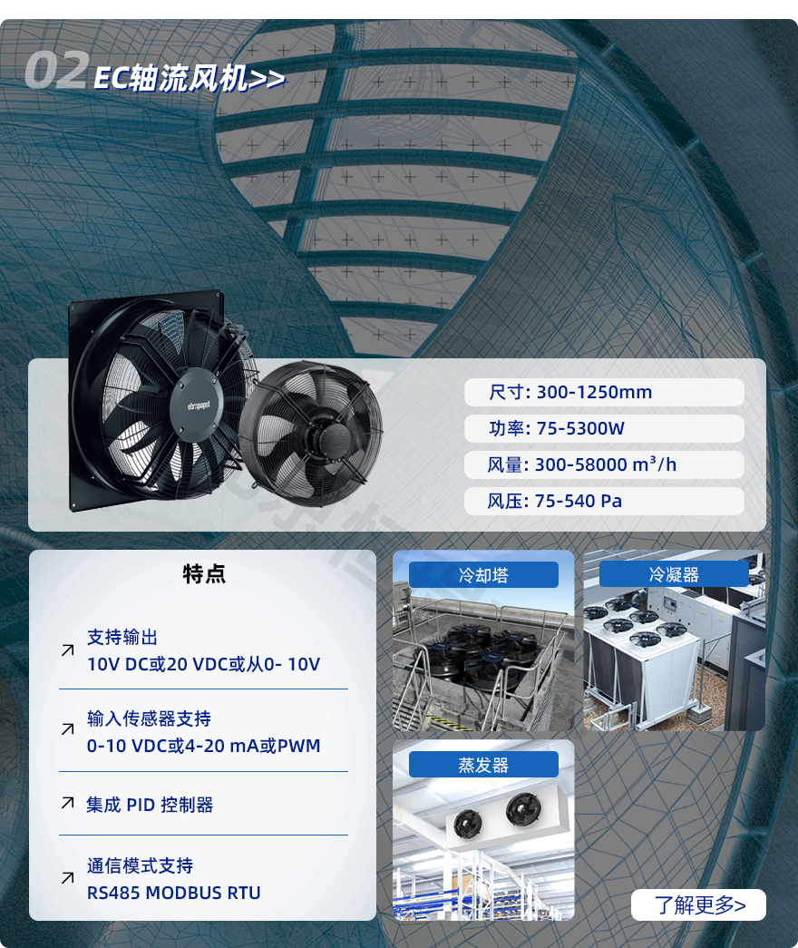 EC風機可確保冷卻塔節(jié)能、可靠、經(jīng)濟地運行。