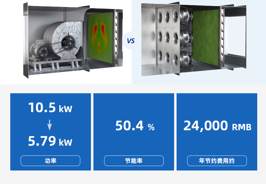 使用多臺EC離心風機替代一臺交流(AC)皮帶