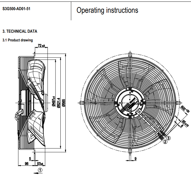 原裝正品軸流ebm風(fēng)機(jī)S3G500-AD01-51的規(guī)格圖
