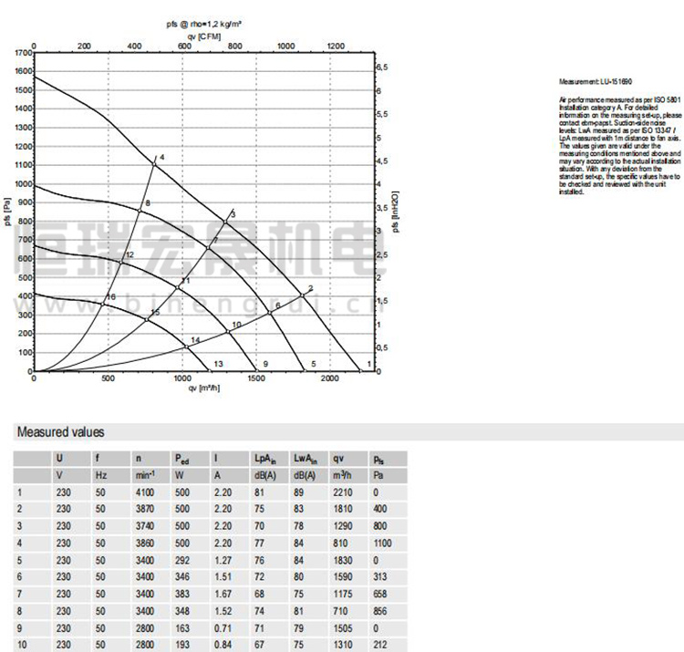 德國ebmpapst R3G250-RR01-H1風機曲線圖