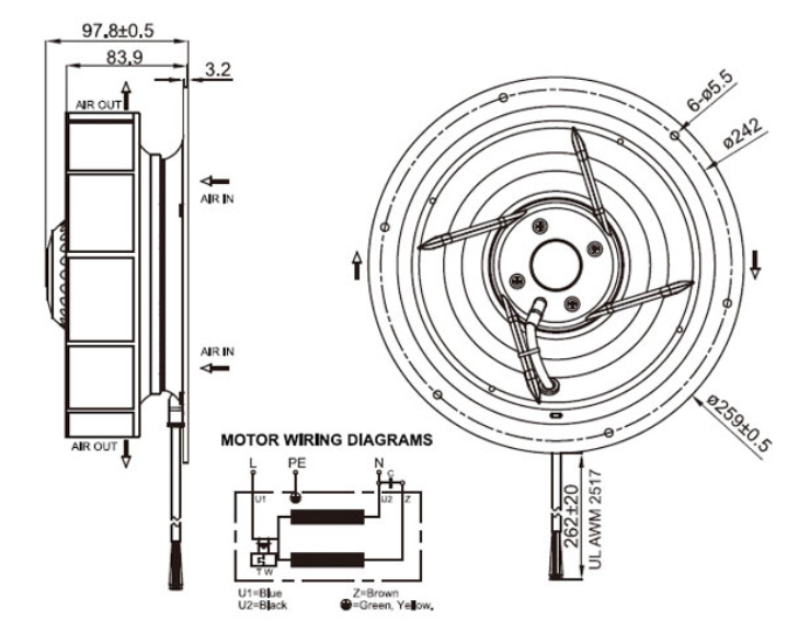 離心扇氣流入風(fēng)口與出風(fēng)口成90度的結(jié)構(gòu)設(shè)計(jì), 適合需要特殊應(yīng)用的工業(yè)化用戶