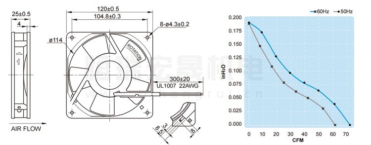 UF12B23BTH FULLTECH 福佑風(fēng)機結(jié)構(gòu)風(fēng)量圖: