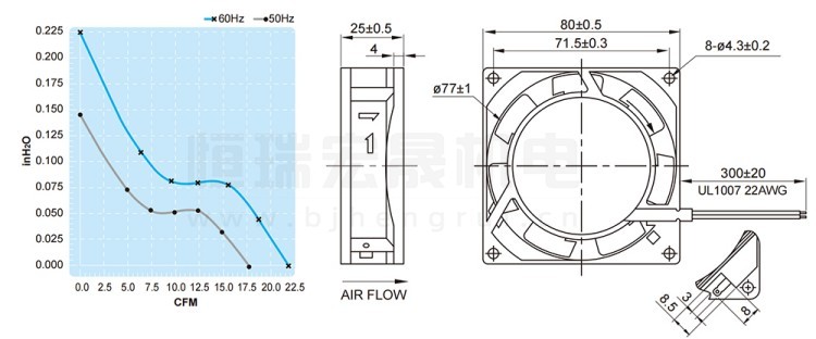 UF-80B23BWH FULLTECH 福佑風(fēng)機(jī)結(jié)構(gòu)風(fēng)風(fēng)量圖: